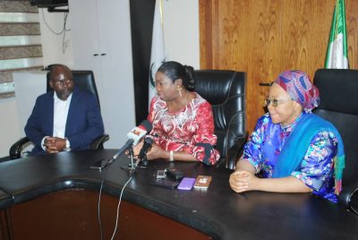 Courtesy visit to the National Hospital Abuja 27th November during the paediatric open heart surgery and cardiac project by the Chairman/CEO Nigerians in diaspora commission Hon Abike Dabiri- Erewa. To her right is Dr Patrick